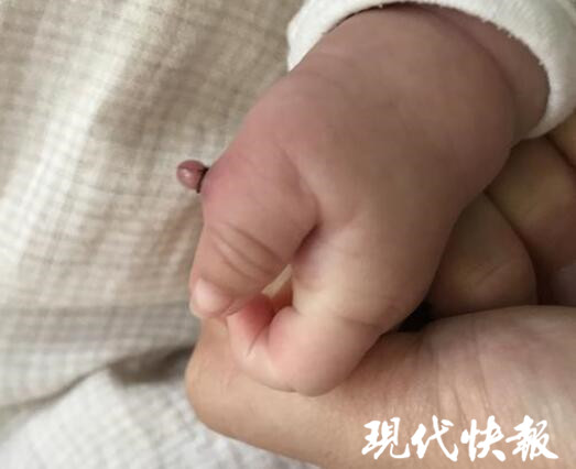 現(xiàn)代快報記者了解到,歡歡一出生就被發(fā)現(xiàn)左手多長出一根指頭,家里老人說這種情況可以用土辦法解決,孩子不用做手術(shù)就能好。