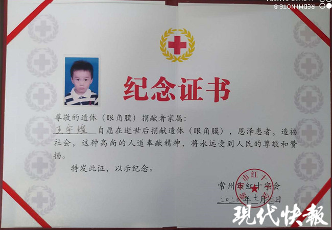 2020年7月12日,王宇煊永遠(yuǎn)地離開了這個(gè)世界,離開了悉心照顧他十多年的爺爺奶奶。這一天,他捐出了自己的眼角膜,在常州市紅十字會(huì)的幫助下,一名飽受失明之苦的陌生人接受了這份愛的饋贈(zèng),重見了光明。