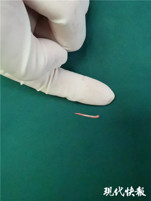 考慮到崔大媽誤吞魚卡已經(jīng)有幾天了,再加上在其他醫(yī)院做過胃鏡,李醫(yī)生使用食管鏡發(fā)現(xiàn)崔大媽的食道環(huán)后位置有個傷口。“我們又給她做了支撐咽鏡,用顯微鉗從傷口處入手找到了魚刺。”當(dāng)一根一厘米長的魚刺順利地從患者的食道中取出時,在場所有的醫(yī)護(hù)人員都松了一口氣。