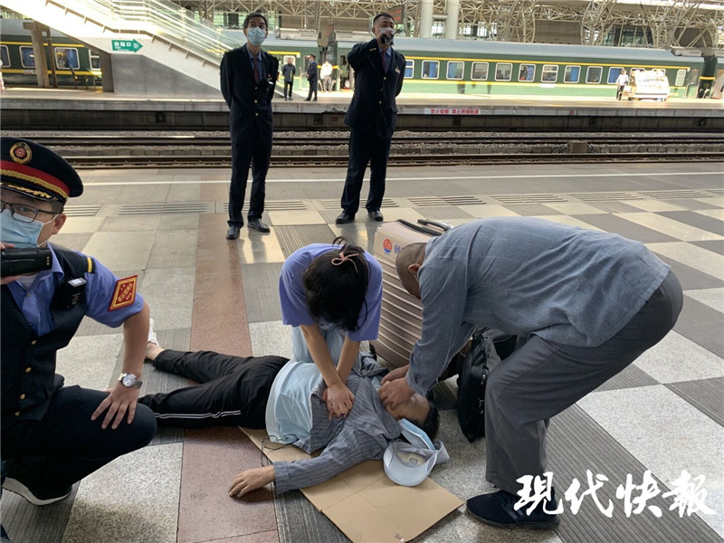 (通訊員 郭明慧 見習(xí)記者 陳子秋 記者 顧元森)10月5日下午,在南京火車站站臺上,一名大媽在等候火車進站時,突然暈倒在地。所幸江蘇省人民醫(yī)院的一名實習(xí)醫(yī)生及時站出來施救,直至救護車趕到,將大媽送往醫(yī)院。