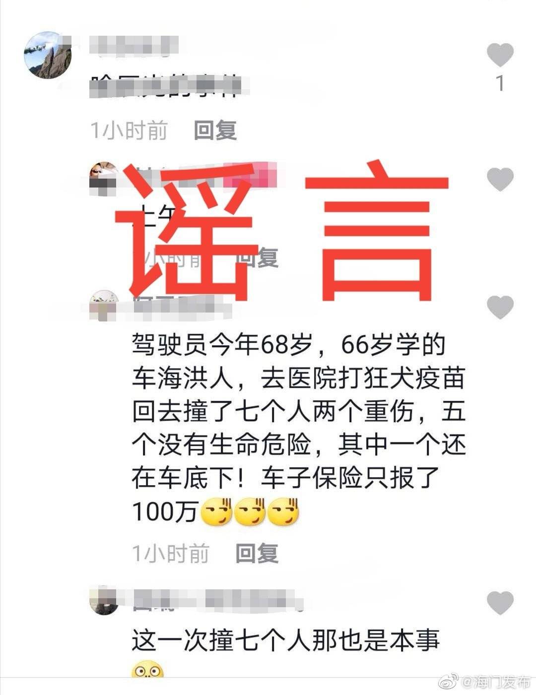 隨后,海門區(qū)委宣傳部官方微博也發(fā)布相關(guān)消息,并表示事故發(fā)生后,微信朋友圈、抖音等網(wǎng)絡(luò)平臺,有不明真相的網(wǎng)民在傳播悅來鎮(zhèn)車禍致多人死亡的不實信息,望廣大市民、網(wǎng)民不造謠、不信謠、不傳謠。