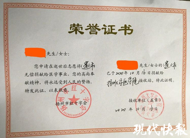 10月16日上午9時許,在紅十字會工作人員和醫(yī)院的幫助下,小米的家人完成了遺體捐獻前的手續(xù)辦理。據(jù)紅十字會工作人員介紹,志愿捐獻器官、遺體,用于救治別人的生命和科學研究,這位父親的大愛之舉令人敬佩。據(jù)了解,目前,揚州市實現(xiàn)遺體(器官)捐獻141例,年齡最小的捐獻者僅為5歲。小米是迄今為止高郵市6名遺體(器官)捐獻者中年齡最小的一位。