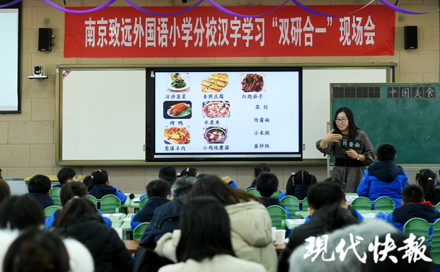 (通訊員 陸瑞芹 記者 黃艷/文 施向輝/攝)香煎豆腐、紅燒茄子、小雞燉蘑菇……這些讓人流口水的美食有什么共同特點?它們都是中國美食。而在小學(xué)生眼里,這幾種美味的讀音也有共同特點,最后一個字都讀輕聲。12月15日下午,漢字學(xué)習(xí)“雙研合一”現(xiàn)場會在南京市建鄴區(qū)舉行,各校的老師們一起在南京致遠外國語小學(xué)分校感受漢字學(xué)習(xí)的創(chuàng)新方式,小學(xué)生們從傳統(tǒng)的學(xué)識字學(xué)寫字,走向漢字文化的學(xué)習(xí)。