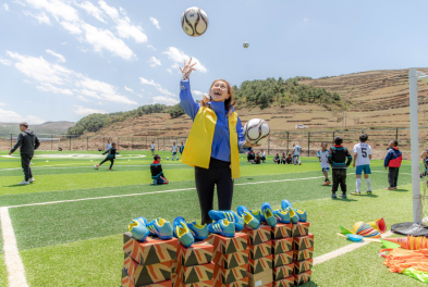 石薇薇女士:很高興能來到瓦吾小學(xué),希望我們倉促之下準(zhǔn)備的小小球鞋、足球,能對你們實(shí)現(xiàn)足球夢想有所幫助!看到你們的笑容,我真切感受到自己在做一件有意義的事。希望以后我可以帶著自己的孩子,再次來與你們相見!