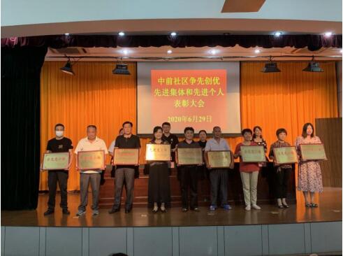 一批優(yōu)秀黨員,弘揚新風正氣。中前社區(qū)黨委召開創(chuàng)先爭優(yōu)先進集體和先進個人表彰大會,表揚了一批優(yōu)秀黨員,鼓勵其他廣大黨員勇學先進,發(fā)揮黨員模范作用,恪盡職守,竭力在工作中爭上游。