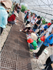 當(dāng)天共有20組百水芊城青少年家庭成員隨著大巴車,來(lái)到八卦洲陌上花渡景區(qū)。景區(qū)介紹工作人員組織青少年瀏覽景區(qū)介紹宣傳冊(cè),讓小朋友先行在室內(nèi)用已開口的塑料瓶模擬種植黃豆。隨后,工作人員帶領(lǐng)大家來(lái)到農(nóng)業(yè)種植大棚里,觀看農(nóng)業(yè)技術(shù)人員示范大棚種植。天氣炎熱卻不影響孩子們的體驗(yàn)學(xué)習(xí)熱情,很多孩子不怕臟、不怕累,興致勃勃地開始動(dòng)手去嘗試,做得像模像樣,通過(guò)學(xué)習(xí)種植的方法進(jìn)一步了解到果蔬的種植過(guò)程。