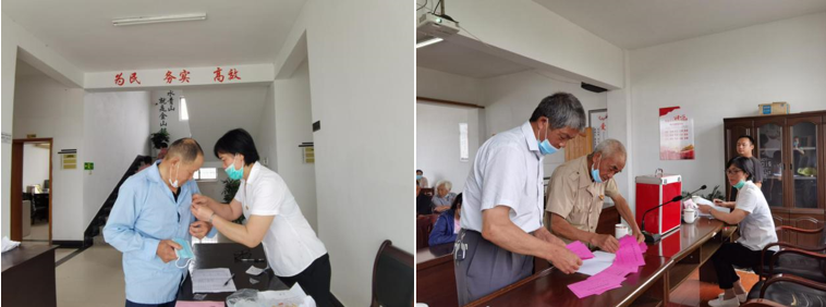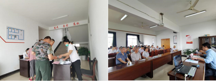 阜莊村黨總支根據(jù)片區(qū)分布情況,在會議當(dāng)天為了更好地服務(wù)黨員群眾及確保高齡黨員參會安全,安排七名志愿者分別接送行動不便的黨員和老黨員前來參會。并在會議簽到前,安排工作人員為參會黨員提供黨徽及口罩,宣傳疫情期間的個人防護(hù)安全知識。從細(xì)微處出發(fā),處處彰顯阜莊村兩委黨員對黨員群眾的關(guān)心與愛護(hù)。