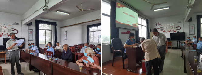 “我志愿加入中國共產(chǎn)黨,擁護(hù)黨的綱領(lǐng),遵守黨的章程......”參會黨員們誓言鏗鏘、承諾擲地,在一字一句中喚醒每一位黨員的初心,堅(jiān)定投身共產(chǎn)主義的信念?;顒又校孱I(lǐng)導(dǎo)還以常識測試、知識問答的形式,以考促學(xué),鼓舞和激勵廣大黨員和群眾回顧崢嶸歲月、銘記紅色歷史,進(jìn)一步激發(fā)廣大黨員和群眾的愛黨愛國熱情。當(dāng)前正值雨季,考試結(jié)束后,志愿者拿著提前準(zhǔn)備好的愛心雨傘送給在座的老黨員們。讓老黨員們充分感受到志愿者的細(xì)心與黨組織的關(guān)懷。其中一位拿到雨傘的老黨員說道:“太感謝大家了,參加活動還給我們老黨員送小禮品,真有心!”