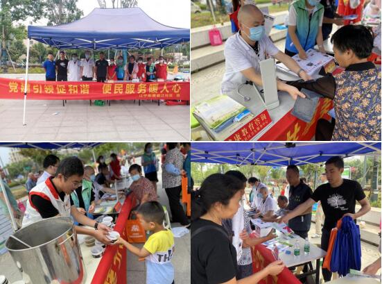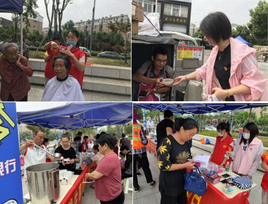 黨建手拉手,服務(wù)惠民生,固長效。盛江社區(qū)以“黨建一盤棋”的思路發(fā)揮整合各類資源,真正做到為民做好事、辦實事?;顒蝇F(xiàn)場,工作人員向社區(qū)居民宣傳普及法律知識,提供免費法律咨詢服務(wù)、計生政策咨詢、社會勞動保障咨詢等,并發(fā)放司法單頁、人口普查單頁、計生用品及社會保障材料。同時,黨員干部為轄區(qū)內(nèi)環(huán)衛(wèi)工人、綠化工人、安保人員、交警、快遞員及居民群眾送去綠豆湯,以此感謝他們用辛勤的勞動為城市建設(shè)作出的貢獻,把清涼送到崗位,把關(guān)愛送進城市建設(shè)者們的心坎里?;顒蝇F(xiàn)場,還有醫(yī)務(wù)人員為居民測量血壓,對血壓偏高的居民提出科學(xué)飲食建議,提醒他們要改變不良生活方式。更有社區(qū)志愿者主動請纓為轄區(qū)居民免費理發(fā),“咱們政府想著老百姓,在家門口就能享受免費理發(fā),真是太好了!”王阿姨高興地說道。