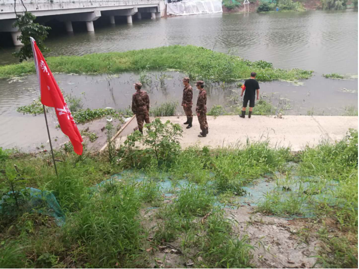 平時(shí)為民,戰(zhàn)時(shí)為兵。雨情就是命令,未來一周,陰雨不斷,防汛如泰山壓頂,7月12日晚,在江寧區(qū)秣陵街道殷巷社區(qū)民兵營(yíng)營(yíng)長(zhǎng)張武帶領(lǐng)下,殷巷社區(qū)民兵隊(duì)伍冒雨赴一線、走現(xiàn)場(chǎng),來到殷巷社區(qū)的圩堤上參與防汛工作,對(duì)轄區(qū)內(nèi)低洼積水地方進(jìn)行排查疏通,確保安全度汛。