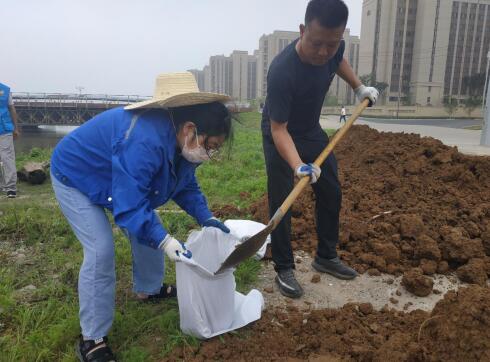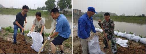 九鄉(xiāng)河是石埠橋村境內(nèi)的通江河,石埠橋橋頭距九鄉(xiāng)河河口閘200米內(nèi)的河西邊河堤是防汛重點(diǎn)部位,此次防汛期間,石埠橋村組織工作人員、黨員志愿者及群眾一起,在烈日當(dāng)頭下,不怕苦、不怕累,勇于奉獻(xiàn),加班加點(diǎn),一鍬鍬的把泥土裝灌包,再疊包,揮汗如雨,一刻不停,做好河堤的加固工作,確?,F(xiàn)場防汛措施落實(shí)到位,為村民建立安全有效的“防護(hù)網(wǎng)”。
