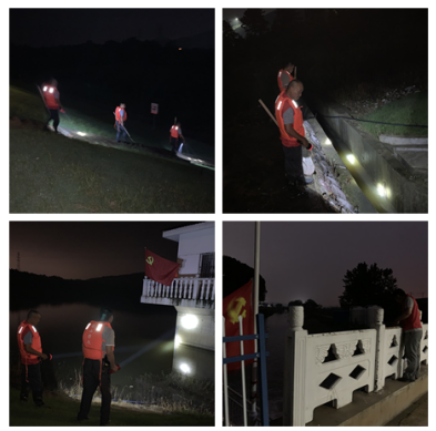 防汛現(xiàn)場,黨總支書記王金廣夜間巡查馬山口水庫水位及背水坡滲漏情況,他強(qiáng)調(diào),要深入學(xué)習(xí)貫徹黨中央關(guān)于防汛救災(zāi)工作重要指示精神,堅(jiān)持底線思維,增強(qiáng)憂患意識,層層壓實(shí)責(zé)任,強(qiáng)化防汛措施,確保湖山村安全度汛,全力維護(hù)人民群眾生命財產(chǎn)安全。此外,社區(qū)黨員們充分發(fā)揮黨員先鋒模范作用,前赴后繼,砥礪前行,24小時堅(jiān)守水庫、黑橋閘值班點(diǎn),并設(shè)立防汛黨員值守崗,時刻關(guān)注水庫水位。此次行動,共參與黨員32人,成立黨員防汛突擊隊(duì)3支,奮力為人民群眾“撥開烏云”,重見“明媚的陽光”。