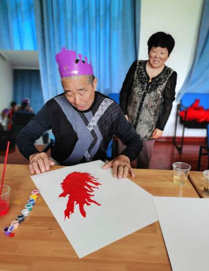 殘疾朋友們分享蛋糕、同舉杯、憶往昔、話家常,飽經(jīng)歲月洗禮的褶皺在笑容的映襯下宛如一朵朵燦爛的花。社區(qū)工作人員還為他們精心設(shè)計了一系列活動,包括吹畫、文藝表演、生活感悟分享、說出愿望等。今年91歲的殘疾人劉正英奶奶開玩笑地說:“我一定要開開心心過好每一天,養(yǎng)好身體努力活到一百歲,爭取過百歲生日!”聽著溫馨的歌聲,吃著甜美的蛋糕,大家都高興得像個孩子。