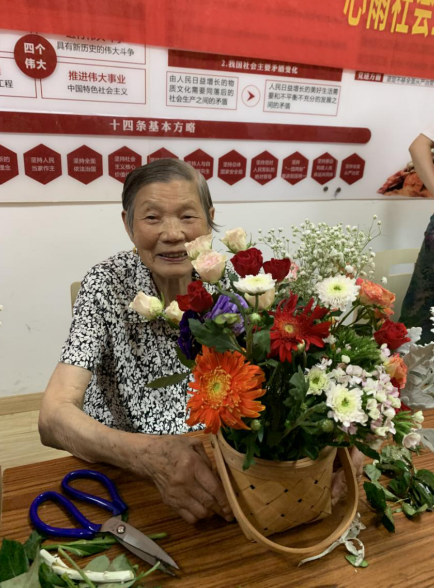 此次的插花藝術活動,增強了轄區(qū)老人的動手能力,陶冶老人的藝術情操。不僅讓社區(qū)老年居民學習到插花技巧,增添美的享受,在向老年居民傳授插花技巧、用鮮花扮靚生活的同時,更好地提升了社區(qū)老年人的文化素養(yǎng),增強居民的退休生活質量,有效融洽了鄰里感情,營造了濃厚的人文社區(qū)的氛圍。