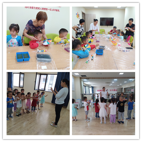 工欲善其事,必先利其器,指導(dǎo)老師將手繪油紙傘需要的畫材分發(fā)給孩子們,又繪聲繪色向大家講解了關(guān)于油紙傘的制作工藝和繪畫技巧。手繪油紙傘的主題為“彩虹和光影”,老師引導(dǎo)孩子們仔細(xì)觀察圖片中彩虹的顏色發(fā)布和光影的色澤。小朋友們摩拳擦掌,認(rèn)真調(diào)配顏色,跟隨老師手執(zhí)毛筆,落筆、上色、勾勒線條,在揮毫潑墨中盡情展示屬于自己的“小小夢想”。隨后,在老師的帶領(lǐng)下,又進(jìn)行了歡快的“手指舞”環(huán)節(jié),將整個活動推向了高潮。