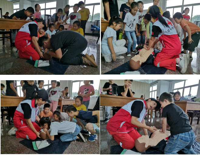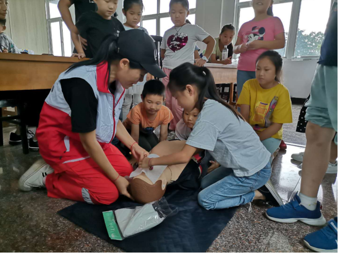 “遇到氣道異物梗阻時,同學們該如何急救?”、“現(xiàn)場急救,注意什么?”急救講座在一個個和青少年安全密切相關的問題中開始。彭福村村紅十字會工作人員首先為轄區(qū)孩子們就常見急癥及自救、互救知識進行了講解,并通過生動具體的實例,示范操作、現(xiàn)場演練等形式,詳細地講解了心肺復蘇知識的要點操作,隨后在工作人員的指導下,孩子們輪流上臺,親子動手實踐,胸外按壓、人工呼吸,大家熱情高漲,邊聽邊記,與志愿者們頻頻互動,表現(xiàn)出了極大的興趣。