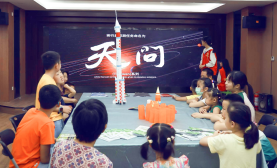 現(xiàn)場(chǎng)南航志愿者播放了“天問(wèn)一號(hào)”科普視頻,并結(jié)合自身專業(yè),向社區(qū)的孩子們普及了航天知識(shí),講述航天故事,傳遞航天報(bào)國(guó)精神?,F(xiàn)場(chǎng)氣氛十分熱烈,孩子們爭(zhēng)先恐后地向志愿者提出自己的疑問(wèn),“火箭要多久才能飛到火星上去?”“制作一艘真正的火箭要用多長(zhǎng)時(shí)間?”“天問(wèn)一號(hào)在火星上該怎么向地球發(fā)送信息?”南航的學(xué)生表示:“作為活動(dòng)的志愿者,能夠引導(dǎo)孩子們?cè)谂d趣中學(xué)習(xí),讓航天夢(mèng)播種在孩子們的心中,我們也很有成就感。”