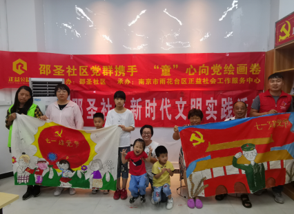 為紀念中國共產(chǎn)黨建黨99周年,繼承和弘揚黨的光榮傳統(tǒng)和優(yōu)良作風,激勵廣大黨員緊緊圍繞“不忘初心,牢記使命”主題教育,培養(yǎng)青少年的愛國情懷。在這蓬勃向上的7月,江寧區(qū)東山街道邵圣社區(qū)新時代文明實踐站聯(lián)合南京正益公益社工邀請專業(yè)的美術老師帶領社區(qū)內(nèi)黨員和孩子們,在邵圣社區(qū)的幸福驛集開展了“邵圣社區(qū)黨群攜手,'童'心向黨繪畫卷”黨建主題活動。