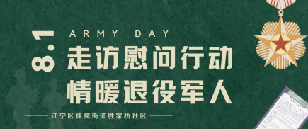 “八一”建軍節(jié)來臨之際,7月30日,江寧區(qū)秣陵街道勝家橋社區(qū)組織網(wǎng)格員走訪慰問了重點(diǎn)優(yōu)撫對(duì)象、軍烈士遺屬,給他們送去黨和政府的關(guān)懷,向他們致以節(jié)日的問候和美好的祝福。