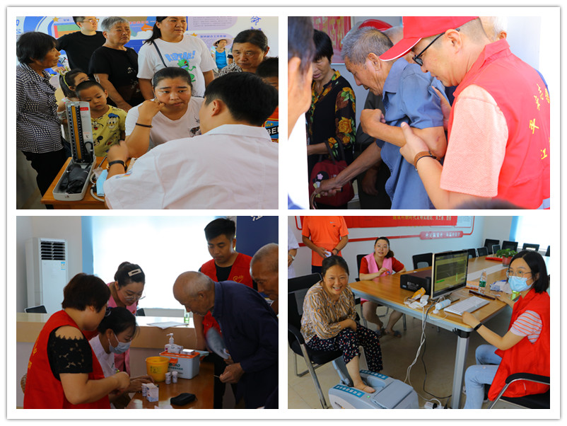 志愿服務(wù)熱情,義診活動貼心。迎著驕陽,轄區(qū)內(nèi)村民朋友們一大早便來到網(wǎng)格站等候體檢,建議村工作人員、網(wǎng)格員、志愿者等積極引導(dǎo)村民排隊等候,遇到腿腳不便的殘疾人,志愿者們會有專人全程陪同。醫(yī)護(hù)人員醫(yī)者仁心,在對村民進(jìn)行血壓、血糖、骨科檢查、口腔檢查等常規(guī)檢查時,還針對每個村民的不同情況,耐心地叮囑他們各種日常注意事項(xiàng),詳細(xì)介紹防病和養(yǎng)生知識,提出合理的膳食、運(yùn)動等,做到“未病先防”、“既病防變”??吹结t(yī)生忙碌時面頰上留下的汗水,在場村民無不表示感動。