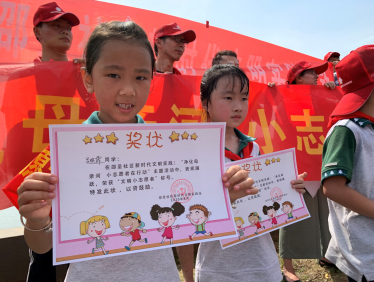 清理垃圾行動(dòng)開始,在志愿者的帶領(lǐng)下,大家像一道乘著橡皮船,家長和孩子互相配合,對(duì)風(fēng)管帶兩邊的垃圾進(jìn)行全面拉網(wǎng)式清理。遇到不方便清理或頑固垃圾,大家索性徒手處理,以實(shí)際行動(dòng)守護(hù)一江碧水,推進(jìn)生態(tài)文明建設(shè)。孩子們一路清理,一路開展競賽,看誰的垃圾袋裝得多、垃圾裝得滿,看誰的眼睛亮、垃圾搶得快,雖然小姑娘們的辮子上滴著汗,小伙子們的后背沾著濕衣,但是一路無人叫苦,沒人喊累。終點(diǎn)處,小志愿者們拿著用自己的勞動(dòng)和汗水贏得的獎(jiǎng)狀,自豪的笑容洋溢在臉上……