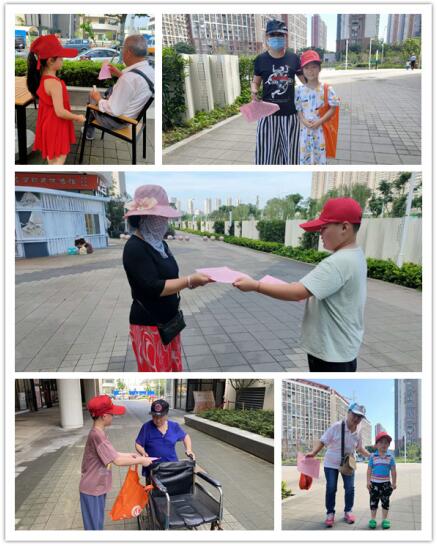 13名小朋友早早來到社區(qū),領(lǐng)取了印有“秋韻園社區(qū)志愿者”字樣的紅色帽子,手提裝有《創(chuàng)建文明城市 爭做文明市民倡議書》的布袋,在社區(qū)屈有紅書記講解了下此次活動的意義及流程后,“童真小分隊(duì)”便來到悅時光廣場。“叔叔阿姨,南京在創(chuàng)建文明城市,這是倡議書,給您看一下~”“哥哥姐姐,愛護(hù)環(huán)境,人人有責(zé)哦~”一小時的倡議書發(fā)放活動,吸引了樓下商場顧客、樓上住戶居民,他們紛紛停下腳步,手拿倡議書,仔細(xì)閱讀。