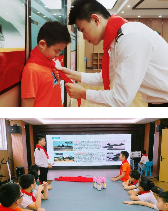 現(xiàn)場(chǎng),志愿者通過播放視頻和現(xiàn)場(chǎng)講解,讓孩子們了解了“紅領(lǐng)巾”所代表著的深刻內(nèi)涵,感悟愛國(guó)主義精神,樹立投身祖國(guó)國(guó)防事業(yè)的理想。同時(shí),來自南京航空航天大學(xué)飛行技術(shù)專業(yè)的飛行學(xué)員林童身穿飛行制服,為社區(qū)的孩子們佩戴上了紅領(lǐng)巾,并細(xì)致地講解正確的紅領(lǐng)巾佩戴過程。隨后,飛行員向孩子們講述了國(guó)防科技與我國(guó)航空航天事業(yè)的發(fā)展史,講述一代代中國(guó)航空、航天人的科研事跡,孩子們紛紛用畫筆在紙上畫出了屬于自己的“小飛機(jī)”,并一筆一劃地簽上了自己的名字。并表示長(zhǎng)大了想當(dāng)科學(xué)家,制造出更厲害的飛機(jī)!