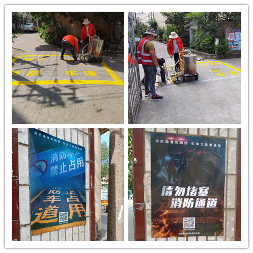 社區(qū)工作人員在了解居民的需求后,對各小區(qū)消防通道進行排查統(tǒng)計,現(xiàn)場對違規(guī)停放的車輛進行勸離的同時,拓寬小區(qū)的消防通道并劃線,確保消防通道符合標準,保障居民“生命的寬度”。此外,還在黃色禁止停車線內(nèi)標注“消防通道,禁止停車”八個大字,提醒廣大居民安全通道是滅火救援的生命之路,切忌堵塞,并在沿線墻面上貼上公益海報,做到“有宣傳、有警示、保暢通”,有效凈化小區(qū)消防安全環(huán)境,得到居民的大力支持與認可。