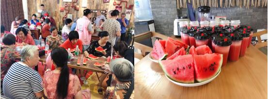 每年二十四節(jié)氣中的“立秋”之時(shí),民間流行立秋“啃秋”的習(xí)俗,即在立秋之日用西瓜“啃”去余夏暑氣,“啃”下“秋老虎”,迎接涼爽的秋季。葉村社區(qū)邀請(qǐng)社區(qū)老年人來到現(xiàn)場(chǎng)并準(zhǔn)備了美味的西瓜及現(xiàn)榨的西瓜汁,分享完西瓜之后,所有老年人不約而同的對(duì)現(xiàn)場(chǎng)的衛(wèi)生進(jìn)行保潔,帶走瓜皮紙屑,留下歡聲笑語。