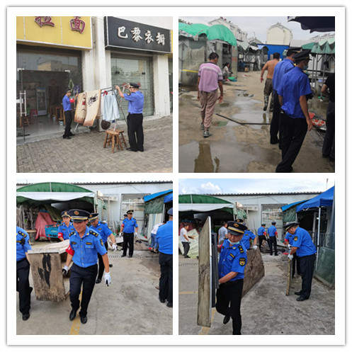 三、開展亂堆亂放、私搭亂建披棚專項整治行動。針對農(nóng)貿(mào)市場內(nèi)外及周邊亂堆亂放、私搭亂建等違章違規(guī)現(xiàn)象,執(zhí)法大隊組織人員進行“拉網(wǎng)式”清理整治,要求商戶限期自行拆除亂搭建的披棚,讓出公用道路。同時,充分發(fā)揮定人定崗巡查與機動巡查相結(jié)合的網(wǎng)格化管理優(yōu)勢,對整改后的區(qū)域?qū)嵭胁欢ㄆ?ldquo;回頭看”,嚴防問題返潮,落實常態(tài)長效。