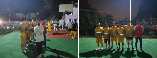 兩支隊(duì)伍分別由周曜和沈禮明帶隊(duì),經(jīng)過預(yù)熱準(zhǔn)備之后,隨著一聲哨響,一場精彩激烈的籃球友誼賽正式拉開帷幕。彭福村籃球隊(duì)隊(duì)員們個個生龍活虎,在球場上盡情展現(xiàn)嫻熟球技,積極爭搶,頻頻得分,每次精彩的配合、搶斷、投籃都贏得了場下球員和觀眾的熱烈掌聲與喝彩,汗水、跌倒、得分無不充分詮釋著“友誼第一、比賽第二”的體育精神。最后,工作人員為參賽人員頒發(fā)了紀(jì)念品,并合照留念,大家在愉快的氛圍中結(jié)束了比賽。