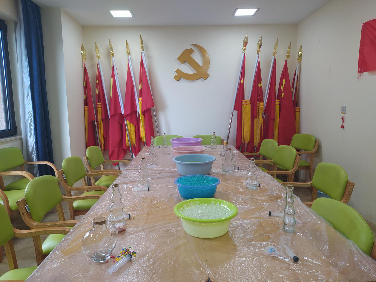 小區(qū)志愿者羅敏將早早準(zhǔn)備好的許愿瓶DIY的各種材料發(fā)到孩子們手里,并詳細(xì)介紹了各種材料的使用方法和許愿瓶的制作步驟。在了解許愿瓶制作的基本步驟和注意事項(xiàng)后,大家就迫不及待的自己動(dòng)手開始體驗(yàn)了。孩子們將一顆顆五顏六色,晶瑩剔透的“海綿寶寶”裝進(jìn)玻璃瓶,將貝殼、海星等裝飾物放到瓶中自己喜歡的位置,不一會(huì)兒的功夫,一個(gè)個(gè)帶著美好心愿的、繽紛多彩且獨(dú)一無二的許愿瓶就制作完成了。許愿瓶承載著一個(gè)個(gè)小小的愿望,一份份大大的夢想,它是對未來的美好期許,愿小朋友們帶著夢想自由飛翔。