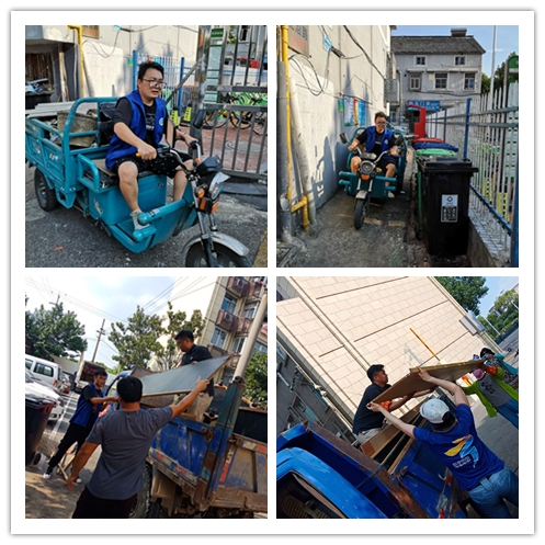 活動(dòng)現(xiàn)場,網(wǎng)格員們集中前往小區(qū)內(nèi)部,他們身穿藍(lán)色馬夾,手拿清潔工具向樓道、道路兩旁的生活雜物、僵尸車、亂停亂放的電動(dòng)車“下戰(zhàn)書”,并對(duì)“不文明”現(xiàn)象進(jìn)行地毯式排查,集中清理了小區(qū)的衛(wèi)生死角,為文明城市揮灑汗水,為生態(tài)家園保駕護(hù)航。其中,網(wǎng)格員謝春林負(fù)責(zé)小區(qū)清雜工作,在清雜過程中,不小心碰破了頭,他依舊帶傷上陣,上午掛水,下午就繼續(xù)投入到小區(qū)拖垃圾的行列中。他在卡車上揮灑汗水,并帶頭講解垃圾分類的重要意義,要求每位居民積極踐行垃圾分類我先行,帶動(dòng)更多的家庭自覺參與到垃圾分類的行動(dòng)中來,共創(chuàng)綠色環(huán)保的居住環(huán)境。在整治過程中,由于天氣炎熱,不少工作人員身體抱恙,從沒學(xué)過電動(dòng)車網(wǎng)格員朱天聰主動(dòng)請纓,頂名替身,騎著電動(dòng)車運(yùn)送垃圾。雖然天氣又悶又熱,大家個(gè)個(gè)干勁十足,垃圾桶邊、綠地里、樓道里,都有網(wǎng)格員忙碌的身影。網(wǎng)格員們的拼搏精神,受到了居民的贊揚(yáng)。