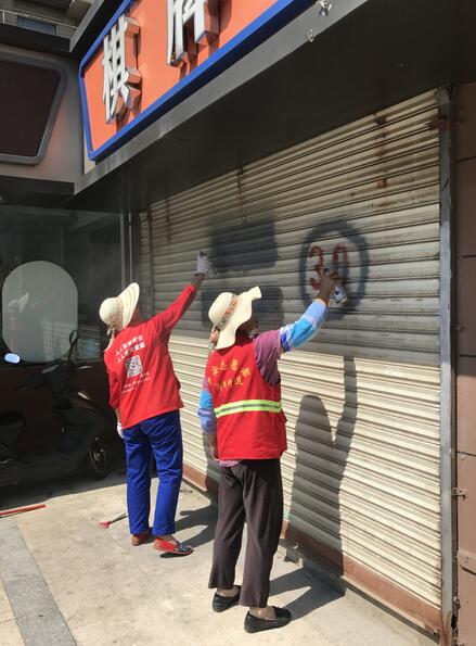 此次活動(dòng)主要針對小區(qū)居民樓道雜物堆放、“牛皮癬”和小區(qū)主干道周圍廣告欄和門面房鐵皮拉門的亂張貼、亂涂寫的小廣告進(jìn)行專項(xiàng)整治。烈日酷暑下,