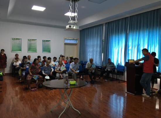 講座伊始,唐醫(yī)生親切的詢問大家:“天氣熱么?”大家回答:“熱。”唐醫(yī)生說:“現(xiàn)場我們?yōu)榇蠹覝蕚淞耸殖中∩茸?,大家每人一把,專心聽我講課,養(yǎng)生保健知識每希望對你們有幫助。”大家回答:“好。”隨后,唐醫(yī)生向大家介紹了精神養(yǎng)生法,精神養(yǎng)生法是指通過調(diào)節(jié)人的內(nèi)心世界,使自己的心態(tài)平和、樂觀豁達,以達到健康長壽的方法。唐醫(yī)生強調(diào),精神養(yǎng)生法包括神志養(yǎng)生和情志養(yǎng)生,通俗點說,就是少生氣、多吃蔬菜水果、少吃油膩大葷食物,每天沒事散散步,一起聊聊天也很的。