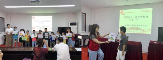為深入推進(jìn)文明城市創(chuàng)建工作,引導(dǎo)轄區(qū)居民文明規(guī)范養(yǎng)犬,南塑社區(qū)物業(yè)分公司攜手楓盛家綜黨支部開展以“科學(xué)養(yǎng)犬,做文明城市小衛(wèi)士”為主題的暑期未成年人活動。活動開始前,社區(qū)利用“掌上云社區(qū)”微信群向轄區(qū)小朋友們征集關(guān)于“文明養(yǎng)犬”主題的畫作,得到居民朋友熱烈響應(yīng)。活動中,小朋友們帶著精心畫的畫在家長的陪同下興高采烈地來社區(qū)參加活動?;顒悠陂g,孩子們積極舉手要上臺分享自己畫作的內(nèi)容,通過趣味的畫作、稚嫩的語言將文明養(yǎng)犬的理念傳遞給大家?;顒咏Y(jié)束后,社區(qū)通過將小朋友們的作品收集起來制作成宣傳海報向廣大居民朋友進(jìn)行宣傳,并免費向社區(qū)內(nèi)有犬家庭發(fā)放牽引繩、倡議書,呼吁社區(qū)居民“文明養(yǎng)犬,從自己做起!”