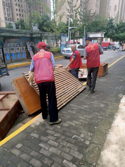 紅馬甲——文明志愿隊。文明志愿隊主要由黨員志愿者和居民志愿者組成。每天早上六點,文明志愿者就集結完畢,一組開始清理樓道雜物,一層一層、一趟一趟地把雜物清理干凈;另一組則是一手拿著垃圾夾,一手拿著塑料袋,走走停停,將一路上隱藏在綠化帶等處的煙頭一一挑出收集。