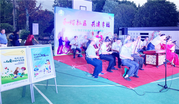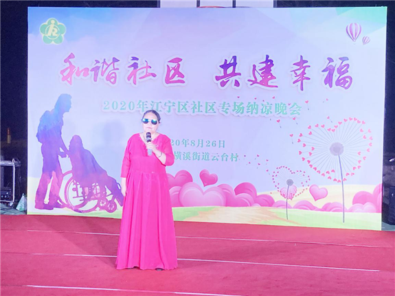 云臺村聯(lián)系江寧區(qū)殘疾人文化藝術(shù)團,結(jié)合納涼晚會,以殘疾人群體性文化形式傳播殘疾兒童早期預(yù)防和殘疾預(yù)防知識,寓教于樂中強化群眾殘疾預(yù)防意識。