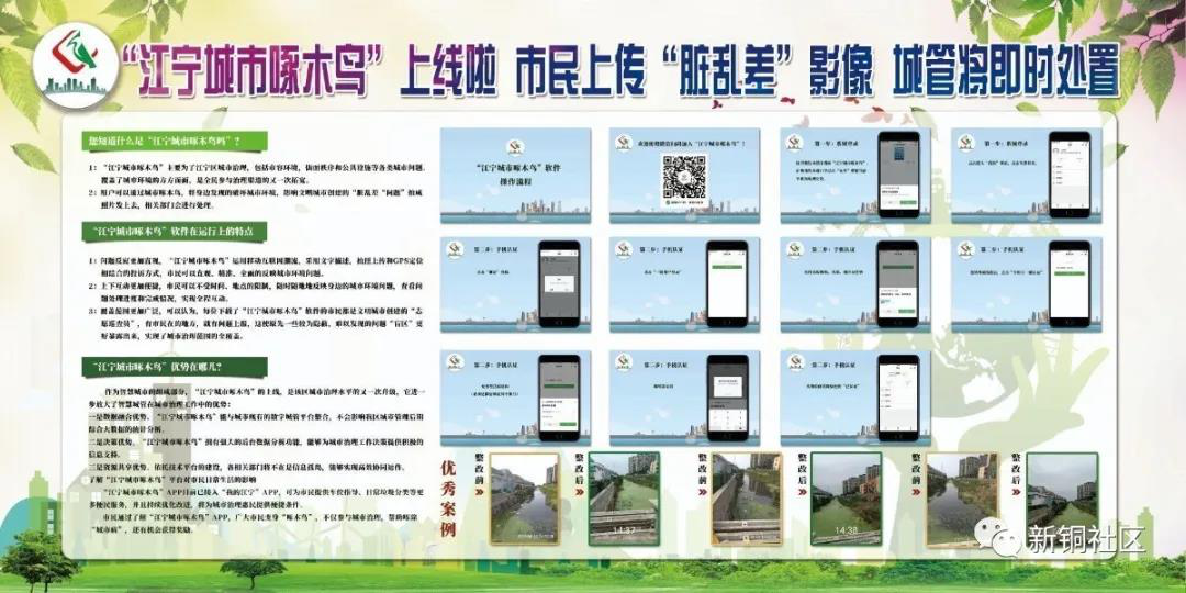 8月23日下午南京市江寧區(qū)江寧街道城管辦聯(lián)合河西社區(qū)開展“江寧城市啄木鳥”進社區(qū)推廣活動,進一步實現(xiàn)城市治理范圍的縱深覆蓋,拓寬全民參與城市治理新渠道。