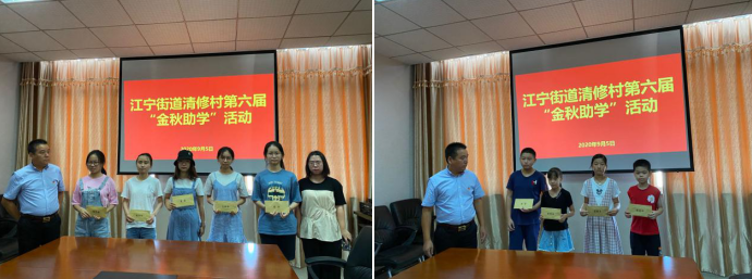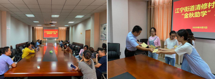 金秋九月,丹桂飄香,為幫助困難家庭學(xué)生圓一個(gè)上學(xué)夢(mèng),幫助困難家庭解決后顧之憂(yōu)。9月5日下午,南京市江寧區(qū)江寧街道清修村積極開(kāi)展“金秋助學(xué)”新時(shí)代文明實(shí)踐主題活動(dòng)。
