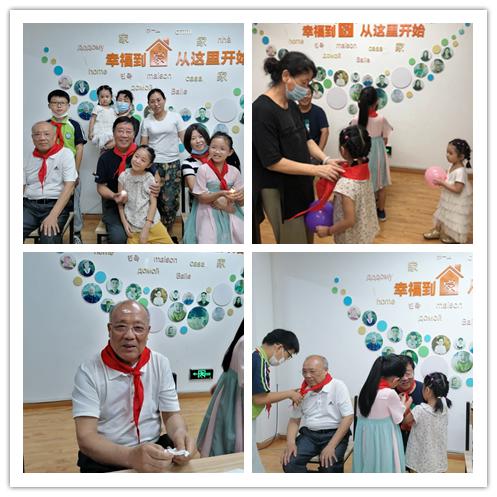 現(xiàn)場(chǎng)的孩子們也朗誦起了小詩(shī)——《老師,您辛苦了》,純粹的聲音里,現(xiàn)場(chǎng)的家長(zhǎng)和老師們一起被代入了青青校園,感慨逝去的青春歲月里師生共處的日子。生活需要儀式感!活動(dòng)尾聲,孩子們認(rèn)真地為爺爺奶奶們戴上了鮮艷的紅領(lǐng)巾,動(dòng)作有些笨拙,爺爺奶奶們一邊耐心地等待,一邊還在安慰:“不急,慢慢來!”;蠟燭擺成了一顆愛心,師生一起許下誠(chéng)摯的祝愿;向陽花主題蛋糕,不僅讓大家品味到甜品的美味,也體驗(yàn)到社區(qū)的用心。