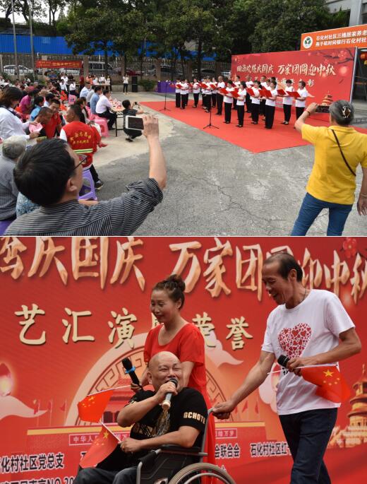 文藝匯演在熱鬧的腰鼓聲中拉開序幕,歌伴舞、歌曲串燒、二重唱、合唱等都是石化村社區(qū)金色年華藝術(shù)隊(duì)自編自排的節(jié)目。轄區(qū)殘疾朋友積極參與,肢體二級(jí)殘疾的社區(qū)殘疾人專職委員給大家?guī)砹艘皇住稅鄣姆瞰I(xiàn)》,感謝社區(qū)殘協(xié)對(duì)殘疾人的關(guān)愛……
