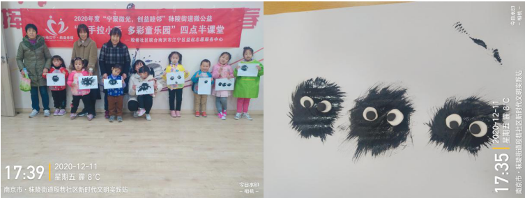 本次活動(dòng)在合唱 《Santa Claus is Coming to Town》中拉開了序幕?,F(xiàn)場,社區(qū)志愿者給小朋友們配發(fā)彩紙、雙面膠等工具,并手把手地指導(dǎo)小朋友們剪紙和粘貼“戒指”的方法。孩子們一會(huì)兒專注于自己制作的“戒指”作品,一會(huì)兒向身旁的小朋友討教“戒指”的制作方法,盡情地沉醉在小小“戒指”的世界中,看著自己親手制作的作品,孩子們相互展示,享受著成功的喜悅。此外,本來周五計(jì)劃只做戒指的,但考慮到小朋友還小,不能用熱膠棒,怕太無聊了,就又增加了一個(gè)牙刷畫環(huán)節(jié),畫的是日本《龍貓》里的灰塵精靈。最終孩子們懷揣著收獲的喜悅,將熱膠棒帶回家,讓家長在家?guī)兔潭?ldquo;戒指”,便于保存,讓“戒指”真正“一顆永流傳”。