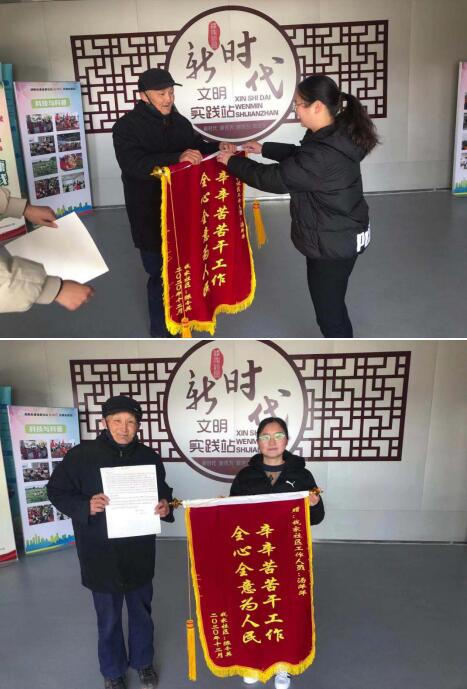 見到老人上門送錦旗,湯萍萍顯得受寵若驚,面對老人的交口稱贊,她露出了靦腆的笑容,連聲說是自己份內(nèi)的事,只要老人們的事得到順利的解決,便是對自己工作最好的肯定。