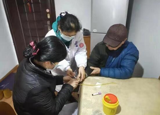 社區(qū)衛(wèi)生服務(wù)中心的羅醫(yī)生耐心細(xì)致地詢問著曾師傅的身體和生活狀況,并熟練地為殘疾人測量血壓、血糖,此次服務(wù)還包含了靜脈抽血,用于查血常規(guī)、肝腎功能等指標(biāo),幫助殘疾人更精準(zhǔn)的了解身體狀況。宋大姐高興地說“以前抽血必須要去醫(yī)院,像我弟這樣,眼睛幾乎看不見,我自己也年紀(jì)大了,每次去醫(yī)院都是我牽著去。現(xiàn)在醫(yī)院天天人那么多,光排隊就要好久。真是沒有想到,現(xiàn)在在家里就能有醫(yī)生來為我們提供服務(wù)了。生活在堯化可真好!”在宋大姐的感謝聲中,社區(qū)工作人員和家庭醫(yī)生又匆匆趕往下一戶殘疾人家中。