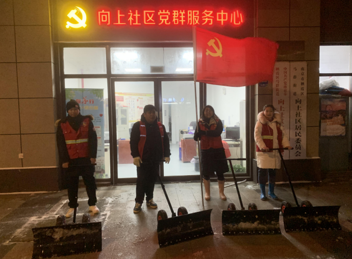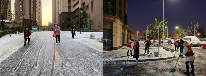 向上社區(qū)黨支部以雪為令 眾志成城掃雪除冰