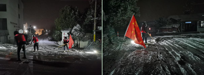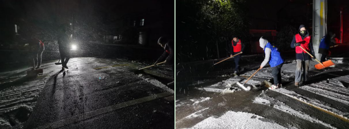 在第一片雪花落地之前,紅旗村早已做好充分的準(zhǔn)備,以“機(jī)械除雪為主、融雪劑融雪為輔”的原則,提前準(zhǔn)備了工業(yè)鹽、雪鏟等材料設(shè)備。深夜,村里啟動應(yīng)急預(yù)案,黨員、網(wǎng)格員和志愿者們冒著嚴(yán)寒,在村內(nèi)的主次干道鏟雪,并在樓道、商鋪門口和公交站臺鋪設(shè)草墊,防止路人滑倒。接到村民家中緊急的冰凍、漏水情況,迅速安排人員上門解決問題,受到村民們的一致好評。