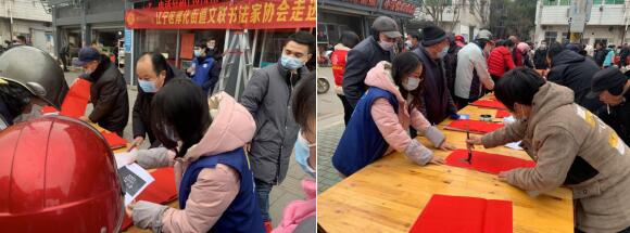 活動現(xiàn)場,墨香四溢,書法家們揮毫潑墨,一幅幅喜慶的春聯(lián),一句句真誠的祝福,為社區(qū)居民送上牛年新春的第一份美好的祝福。與此同時,網(wǎng)格員在現(xiàn)場耐心疏導(dǎo),悉心提醒,讓居民們戴好口罩,做好個人防護(hù),倡導(dǎo)大家不僅要把春節(jié)過得熱鬧非凡,還要平安健康。居民們也十分配合,有序排隊,依次領(lǐng)取春聯(lián)和“福”字,把美好的祝愿帶回家。