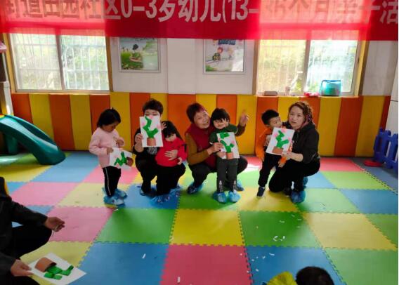 陽春三月,屋外陽光燦爛,室內(nèi)輕音樂響起。轄區(qū)嬰幼兒家庭正圍坐一圈認真聆聽熊老師的講解。“寶寶們聽著音樂,朝著一個方向走,依次介紹一下自己。”現(xiàn)場,點名問號環(huán)節(jié),嬰幼兒們在互動中逐漸認識彼此。隨后,音樂律動《a ram sam sam》、手指操《1—10》、身體律動《clap your hands》、絲巾游戲洗衣服《barroom ballet》、《茉莉花》等游戲環(huán)節(jié)鍛煉了0-3歲嬰幼兒們的“五感”,開發(fā)了嬰幼兒們的空間思維能力。手工制作仙人掌環(huán)節(jié)更是贏得了親子家庭的一致好評。在家長的幫助下,嬰幼兒們不僅學會認識顏色,更成功制作出一個個渾身是刺的仙人掌。