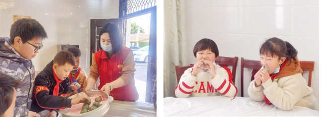 在志愿者的帶領下,孩子們洗干凈小手后擼起袖子,學著和面。志愿者一邊展示一邊指導,孩子們樂在其中,揉出來的青團圓滾滾的。將揉好的青團放到蒸籠里蒸熟后,每個孩子都嘗到了自己做的青團。這一次的體驗對孩子們來說,既是一次新奇的活動,又是傳統(tǒng)文化的傳承。